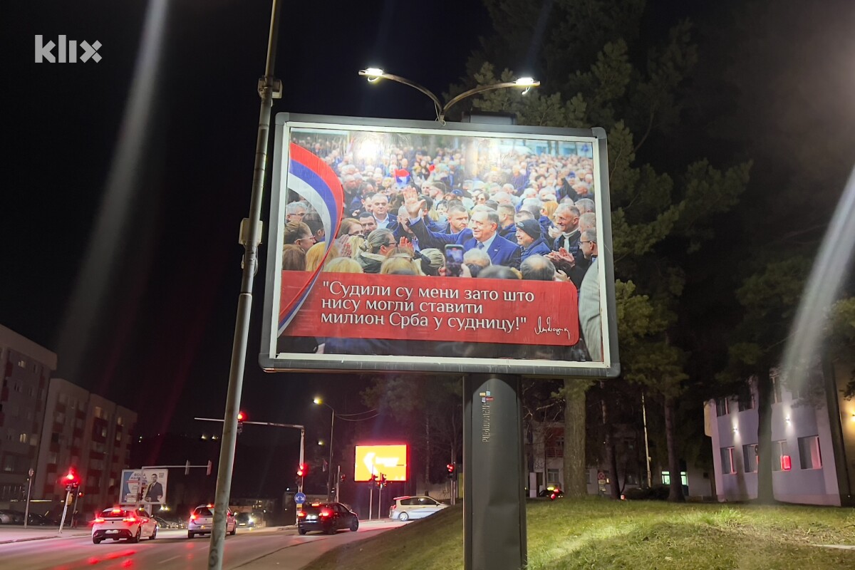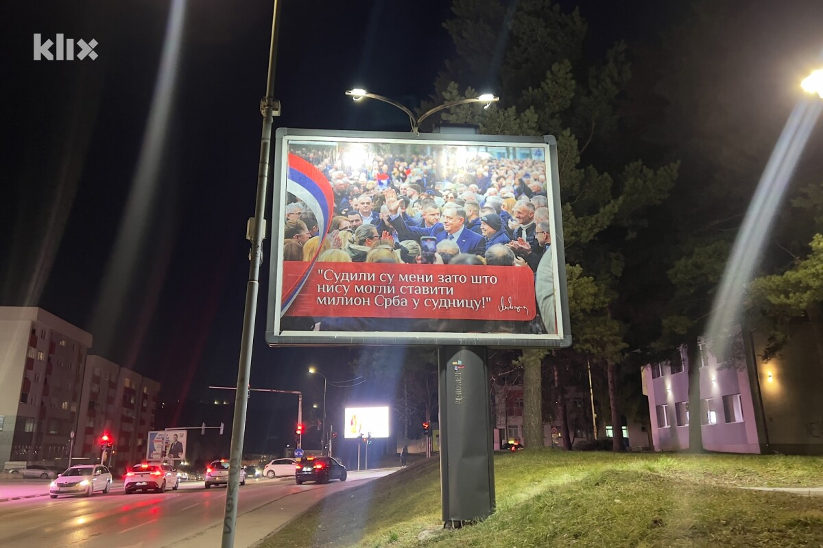Na jednom od plakata piše “Predsjednik Dodik, jedan u ime svih”, a na drugom “Sudili su meni zato što nisu mogli staviti milion Srba u sudnicu” dok sam autor ovog sadržaja nije poznat.