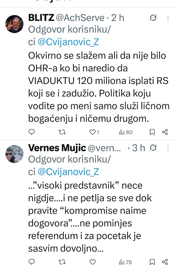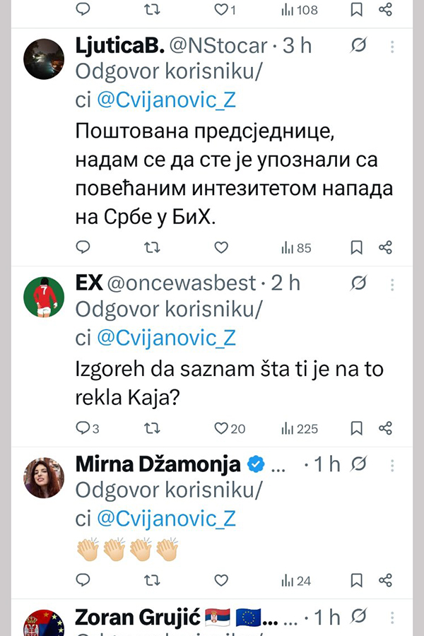 Ne stišavaju se reakcije na društvenim mrežama, nakon istupa Željke Cvijanović, članice Predsjedništva Bosne i hercegovine.